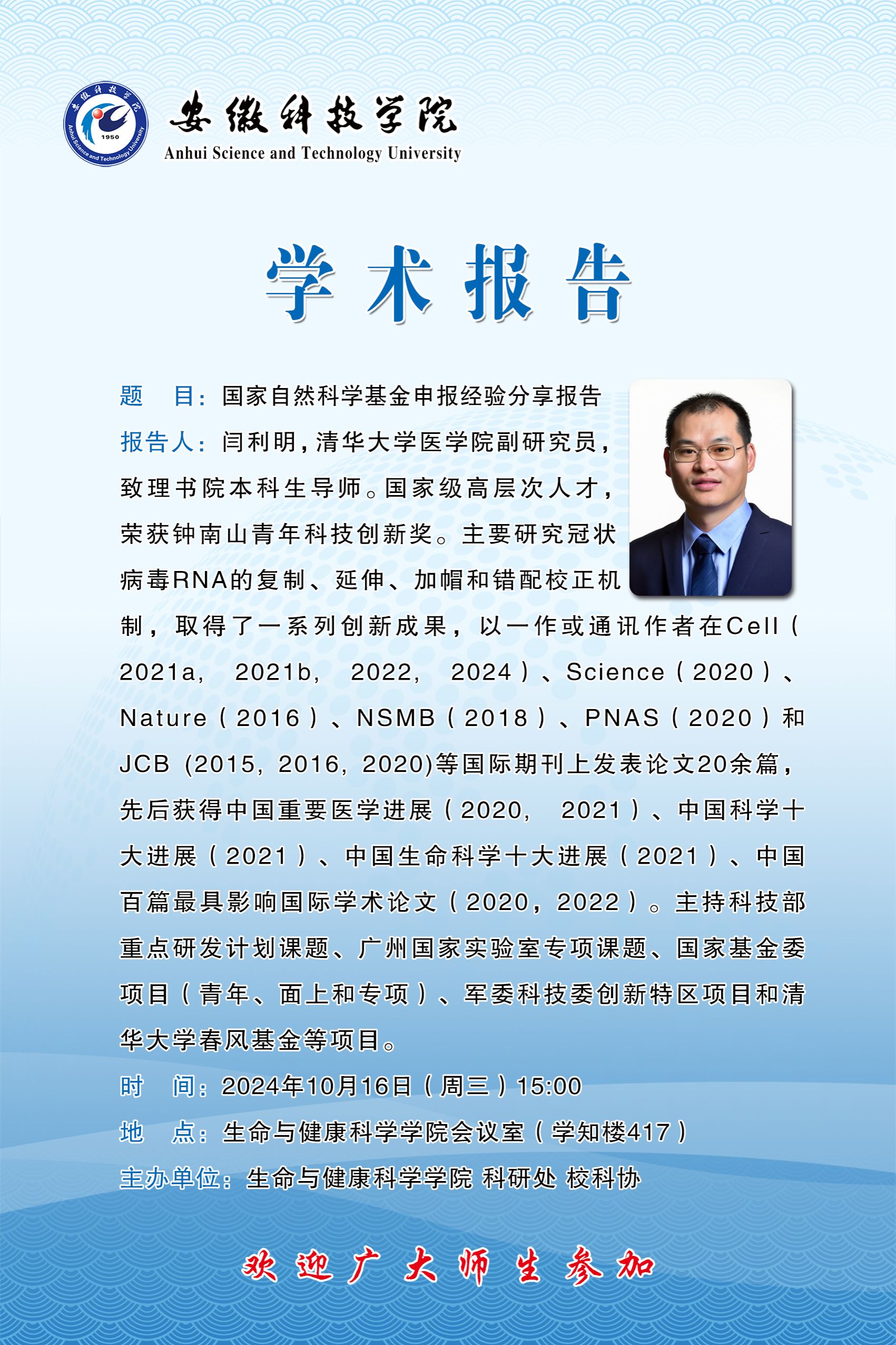 【日期:2024年10月14日】 【单位:科研处 校科协 生命科学与健康学院】 【作者:钱晶晶】