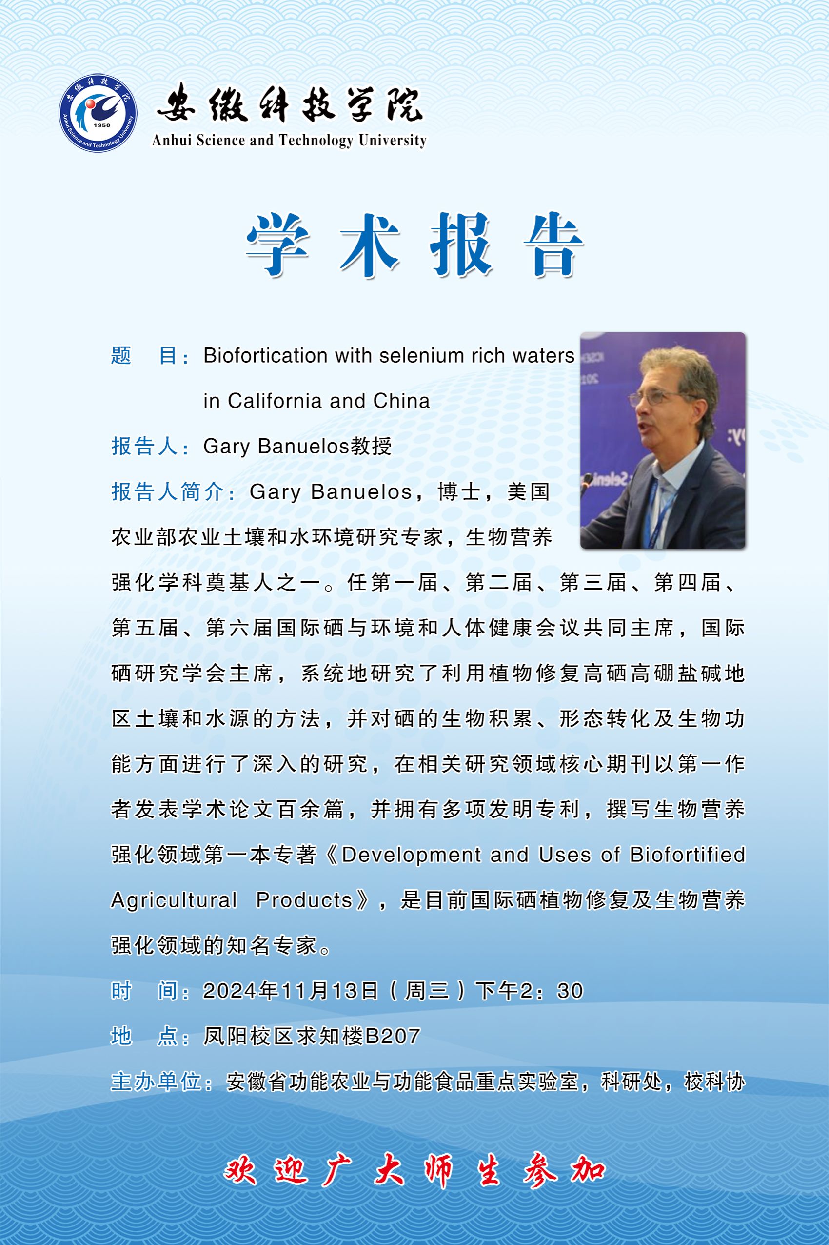 【日期:2024年11月11日】 【单位:安徽省功能农业与功能食品重点实验室、科研处、校科协】 【作者:宋佳平】