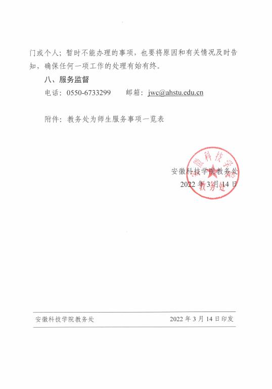 教务处为师生服务事项一览表