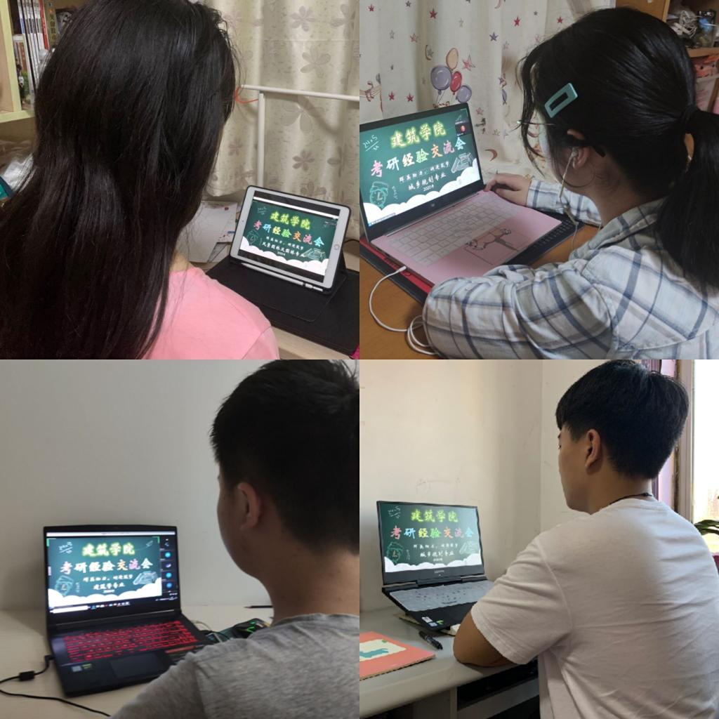 为在疫情防控阶段更好地服务2021届考研学子,6月13日至14日,建筑学院通过腾讯会议,分专业组织开展了四场“群英助力,研途筑梦”线上考研经验交流会,会议邀请考取中央美术学院、中国矿业大学、南京工业大学、大连理工大学、合肥工业大学、西南大学等高校共计17名2020届优秀党员代表、团员代表向同学们进行了考研经验分享和在线答疑,建筑学院辅导员以及来自不同年级不同专业814人次学生参会。
