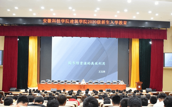 王玉林利用图片和PPT从图书馆是什么、安徽科技学院图书馆基本情况、与建筑学院同学直接相关的文献资源、利用图书馆资源的有效方法、纸质文献借阅权限与手机检索书目信息、座位预约系统使用方法与注意事项这六个方面向大家介绍了如何高效利用图书馆资源。