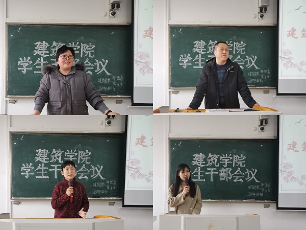 3月17日下午,建筑学院全体学生干部会议在致知楼c108召开。建筑学院党委副书记谢宜勤、建筑学院辅导员沈德艳、李新、阮怀思、建筑学院全体团学骨干及班团干部参加此次会议,会议由沈德艳主持。