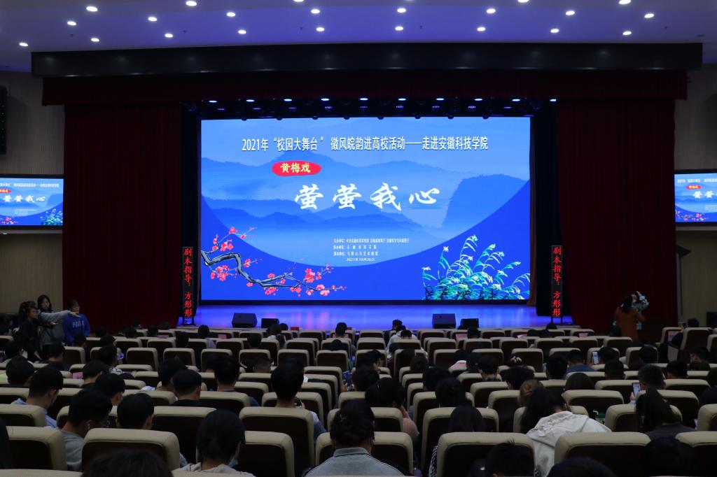 10月26日,由中共安徽省委宣传部、安徽省教育厅、安徽省文化和旅游厅联合主办的2021年校园大舞台“徽风皖韵”进高校——安徽科技学院专场在龙湖校区活动中心开演。校党委副书记,校长李震,党委委员、副校长黄远友,党委委员、纪委书记、监察专员王强,党委委员、副校长黄友锐莅临演出现场,建筑学院50余名师生共同欣赏安徽省马鞍山市艺术剧院的精彩演出。