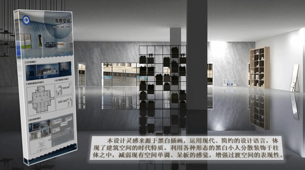 作品展示现场,获奖作品团队队长化身“讲解员”为前来参观的师生讲解了作品设计理念及创新点。一等奖团队队长张家豪说道:“我们团队的设计初心是喜迎党的二十大召开之际,弘扬党的精神谱系和增强同学们爱国爱党理念,让同学们感受到图书馆的家国情怀,并结合图书馆的实际情况,充分考虑到图书馆设计的美感和功能性,用我们所学知识,将党建知识通过文化墙的形式表现出来,营造深厚的文化氛围,潜移默化地影响和感染着同学。”