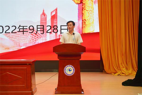 副院长吴伟东致辞。他首先代表全院师生员工对2022级新生的到来表示热烈欢迎和衷心祝贺;接着,简单介绍了学院的概况和发展历程,重点讲解了学院的专业建设、师资力量、教学科研、学生考研、就业创业等情况;最后,他对全体新生提出了三点希望和要求:一要保持咬定青山不放松的坚韧,增强信心,抢抓机遇,学好专业,一步一个脚印迎接新的挑战;二、培养勤于学习思考的睿智,勤于学习、静心思考,培养个人的睿智和能力;三要勇于责任担当,不断锤炼善于担当、精于担当的品格素养,学会学习、学会做人、学会做事。