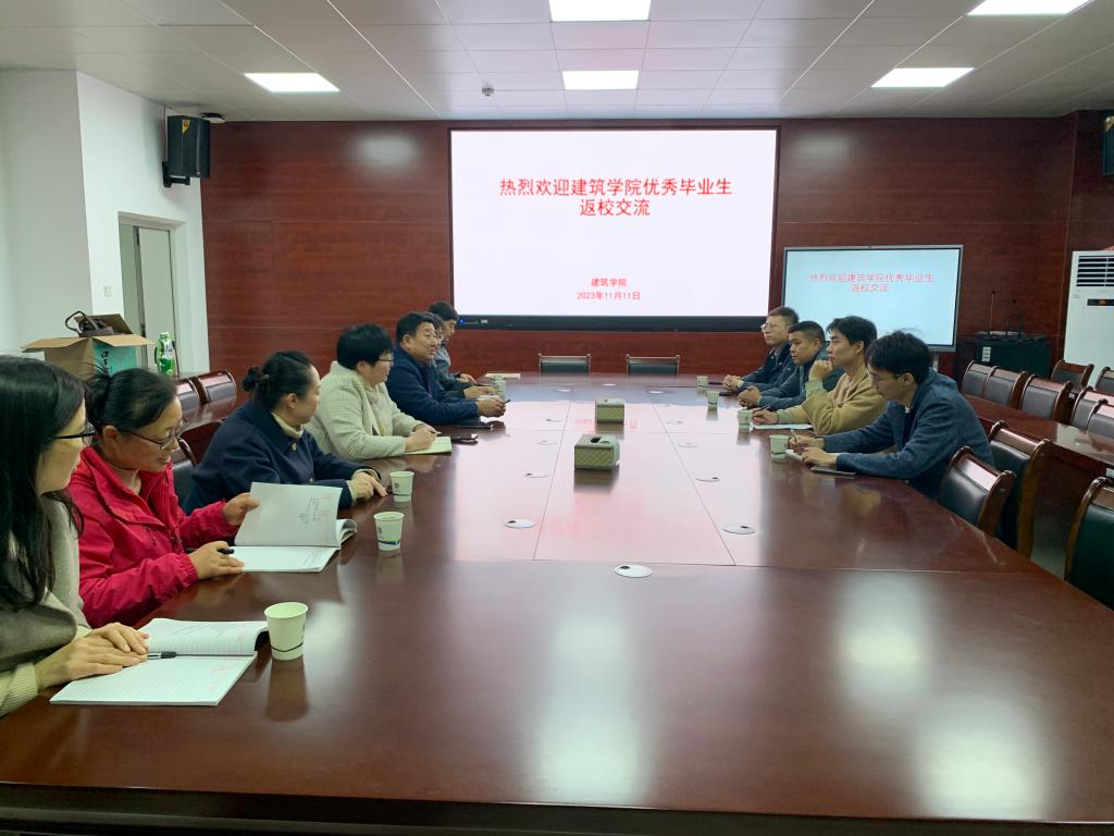 11月11日下午,建筑学院邀请李兵、刘文博、单新海和黄启四位优秀毕业生,在尚行楼A301会议室召开优秀毕业生返校交流会,学院党政领导、教研室主任和相关教师参加了会议。会议由张远兵主持。