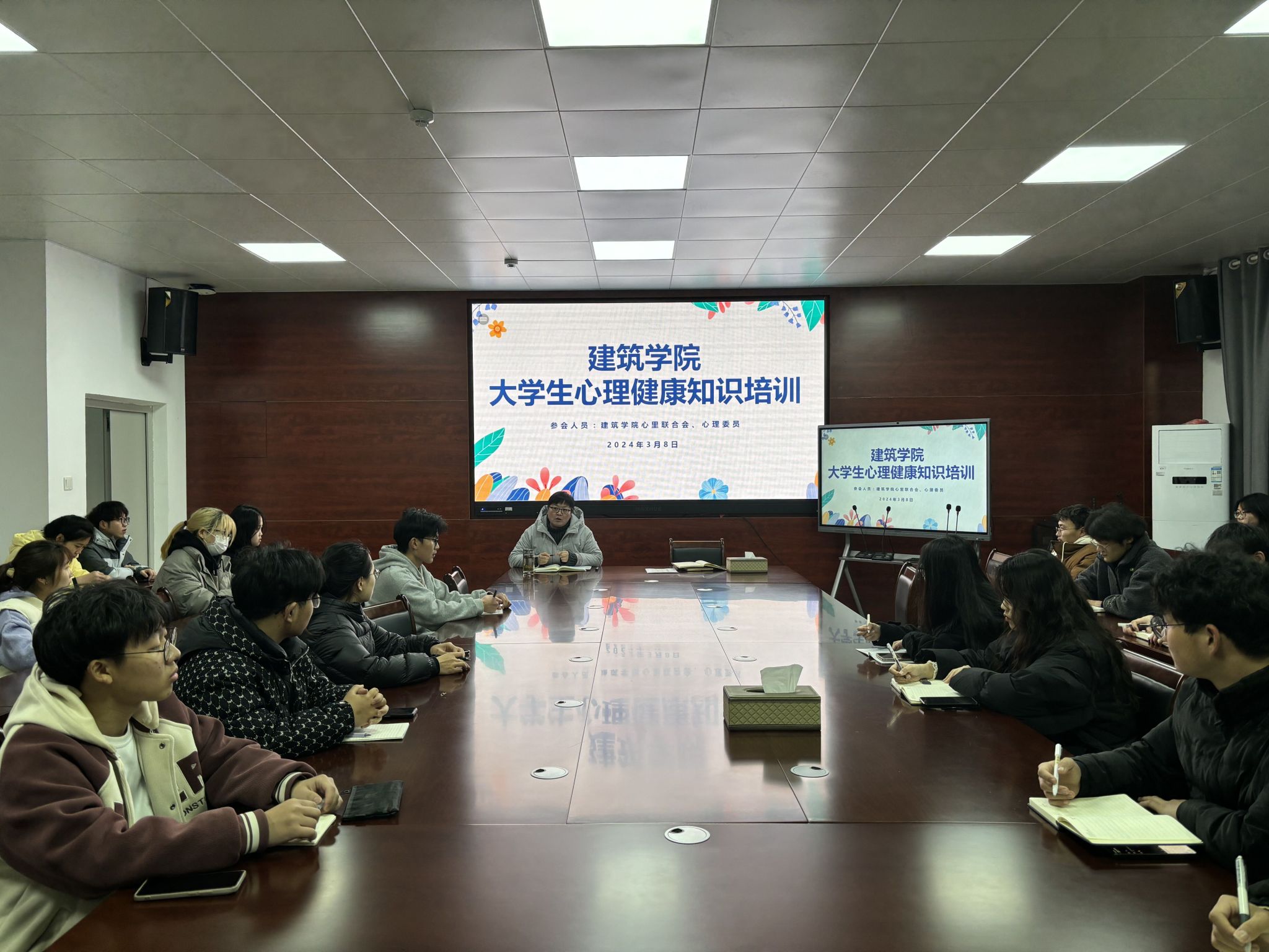为做好学生心理健康教育工作,提高学生心理健康工作技能,3月10日下午,建筑学院在尚行楼A301开展大学生心理健康知识培训,学院心理健康辅导老师王明哲、心理联合会、全体心理委员参加。本次培训由学院党委副书记、国家心理二级咨询师谢宜勤主讲。