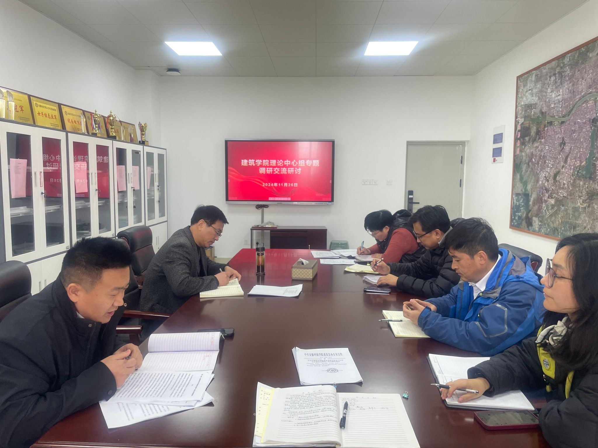 11月26日下午,建筑学院在尚行楼A302召开理论学习中心组学习会暨调研成果交流研讨会。学院理论学习中心组成员参加会议,会议由建筑学院党委书记傅友福主持。