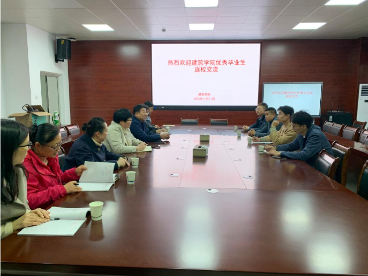 11月11日下午,建筑学院邀请李兵、刘文博、单新海和黄启四位优秀毕业生,在尚行楼A301会议室召开优秀毕业生返校交流会,学院党政领导、教研室主任和相关教师参加了会议。会议由张远兵主持。