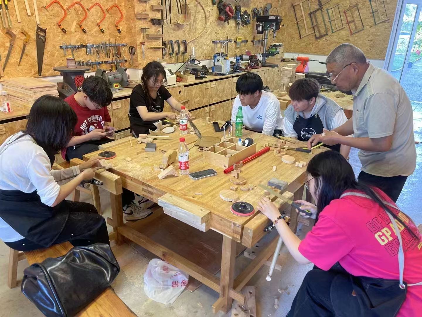 在卢班匠木工坊,卢师傅的悉心讲解让团队成员对木工匠人及其精湛技艺有了全新的认识。面对展示架上那些雕工精细的木制工艺品,团队成员们满怀好奇地投入到制作之中,亲身体验木匠技艺的深邃与奥妙。随着亲身实践的深入,他们逐渐意识到其中的复杂与不易。锯割的每一刀都需要极高的精准度,稍有偏差便可能前功尽弃。打磨的过程更是考验耐心与毅力,需要反复细致地进行,直至木头表面变得光滑如镜。