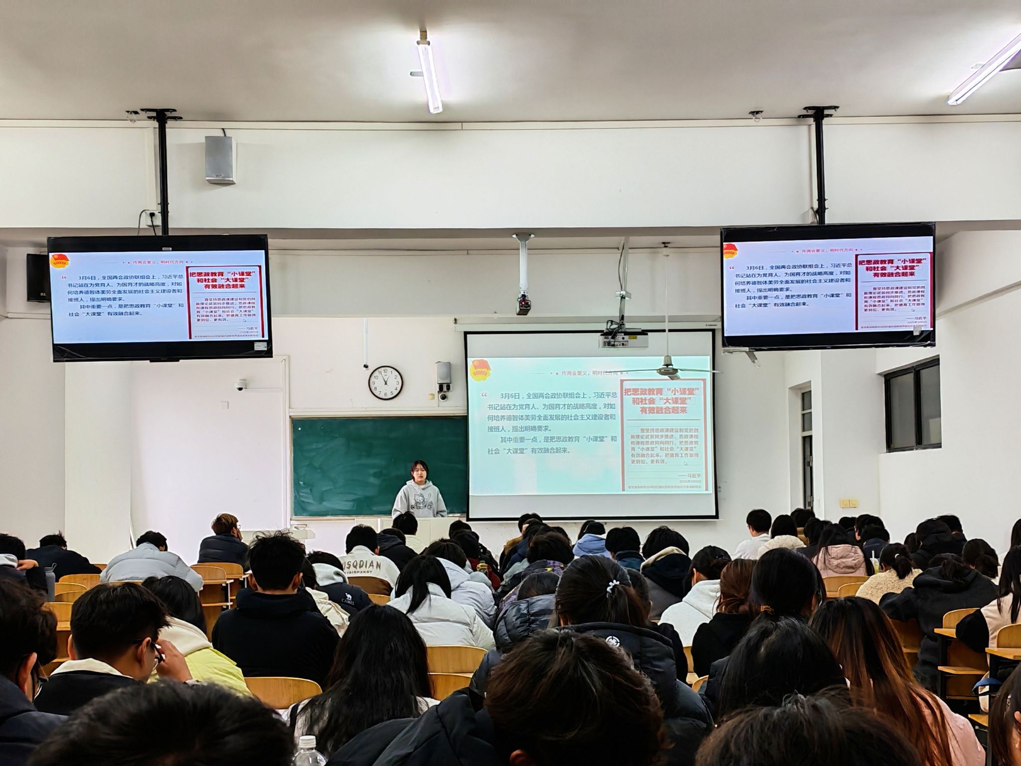 立足时代坐标,她结合党的二十届四中全会中国足彩网“十五五”规划建议,引用习近平总书记给新疆支教志愿者的回信精神,鼓励同学们以西部支教者、重大工程一线建设者为榜样,将个人理想融入国家发展大局,在服务人民、奉献社会中实现人生价值。一幅幅奋斗图景与时代脉搏同频共振,激励着在场青年把专业知识转化为强国行动,以坚定信念、过硬本领和实干担当答好“强国有我”的青春答卷。
