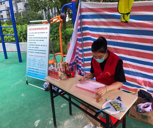 四里河街道办事处的工作人员每天24小时坚守岗位,监测防控水位,及时上报紧急情况。工作现场环境简陋,只有一个折叠篷、一张桌子、几把塑料椅以及一些必需品。工作人员铲土铲沙、搬运沙袋、巡查岸堤。汛情严重时,累了就趴在桌子上休息一会。