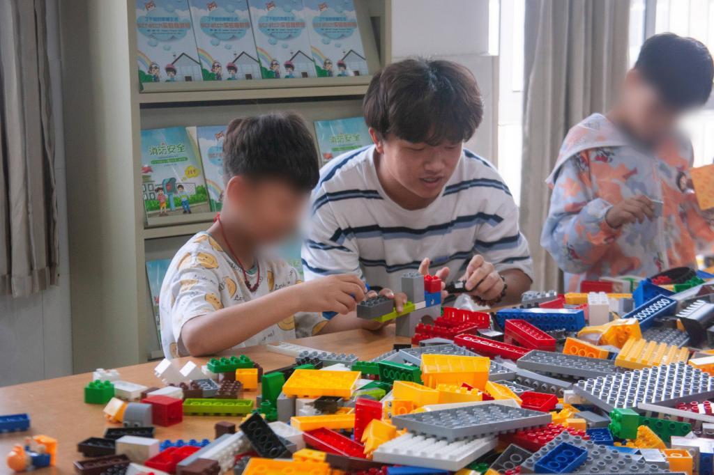 为了确保接下来的实践落实落细,吕辉带领实践团来到听力障碍班级,班主任胡向红根据孩子们实际情况对实践方案提出修改建议。此刻的实践团成员早已被孩子们的热情和童真所打动,好像不需要破冰游戏就能熟悉彼此、交流无障碍,孩子们探索着姐姐手中的相机,牵着哥哥的手走进他的城堡世界……