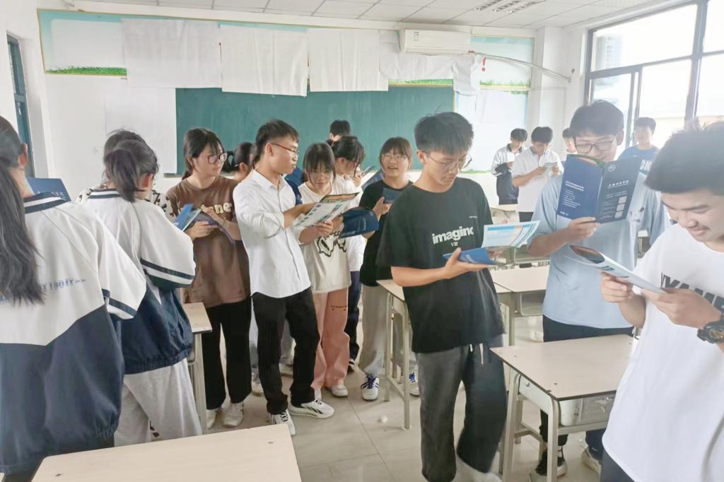 师生交流互动环节,团队成员通过宣传折页,向学弟学妹们详细介绍了安徽科技学院的本科专业种类以及本科一批、二批和提前批的招生情况,就学习、生活、职业规划等问题帮助母校学子答疑解惑,一一回答了同学们比较关心的安科校园环境、住宿、食堂、大学活动、2025更名大学发展规划等问题。通过实地宣讲,同学们对安科充满了向往、充满了信心,期待九月在安科与学长相遇。