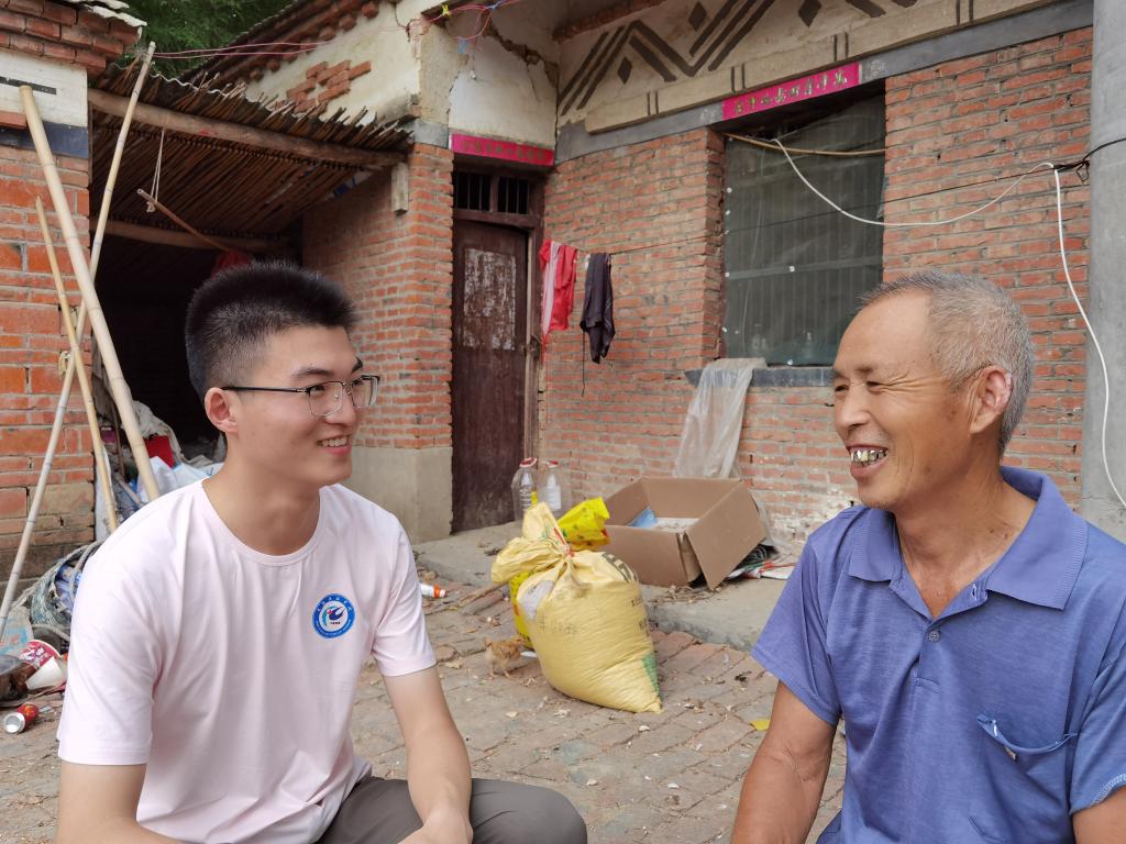 居住于阜阳市柴集镇霍郑村的梅同景爷爷就是一名光荣的退役军人。梅爷爷今年已经七十七岁了,但依然有一颗赤子之心。每当回忆起曾经从军的经历,他仿佛又变成了当初那个意气风发的少年。从入伍之初小小的炊事兵到后来“东方红一号”卫星数据员,他在无烟的战场挥洒着自己的热血和热情,在篝火旁的草地上和战友唱一曲怀乡的歌,跳动的火焰映红了他黝黑的侧脸。他对实践队员梅俊旭动情地说,“祖国的未来就靠你们年轻一代了!”