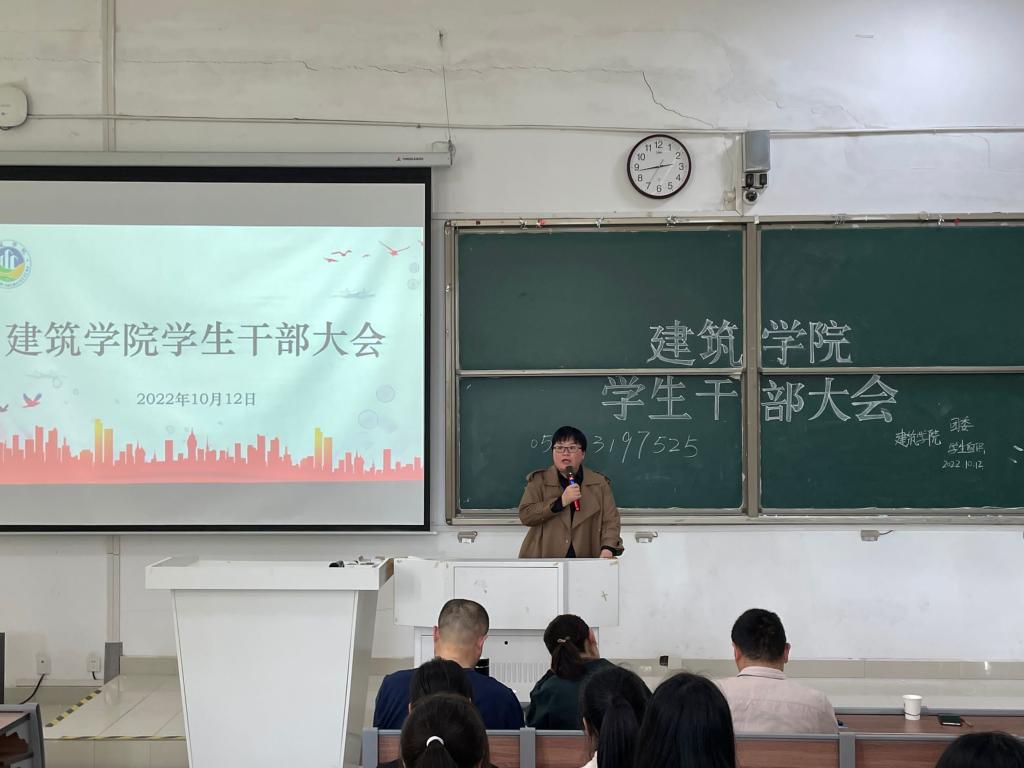为提高学生干部的综合能力,明确本学期工作目标和任务。10月12日下午,建筑学院在致知楼C111召开学生干部大会。学院党委副书记、纪委书记谢宜勤,全体辅导员、学院团学骨干及班团干部等参加此次大会,会议由学院团委书记沈德艳主持。