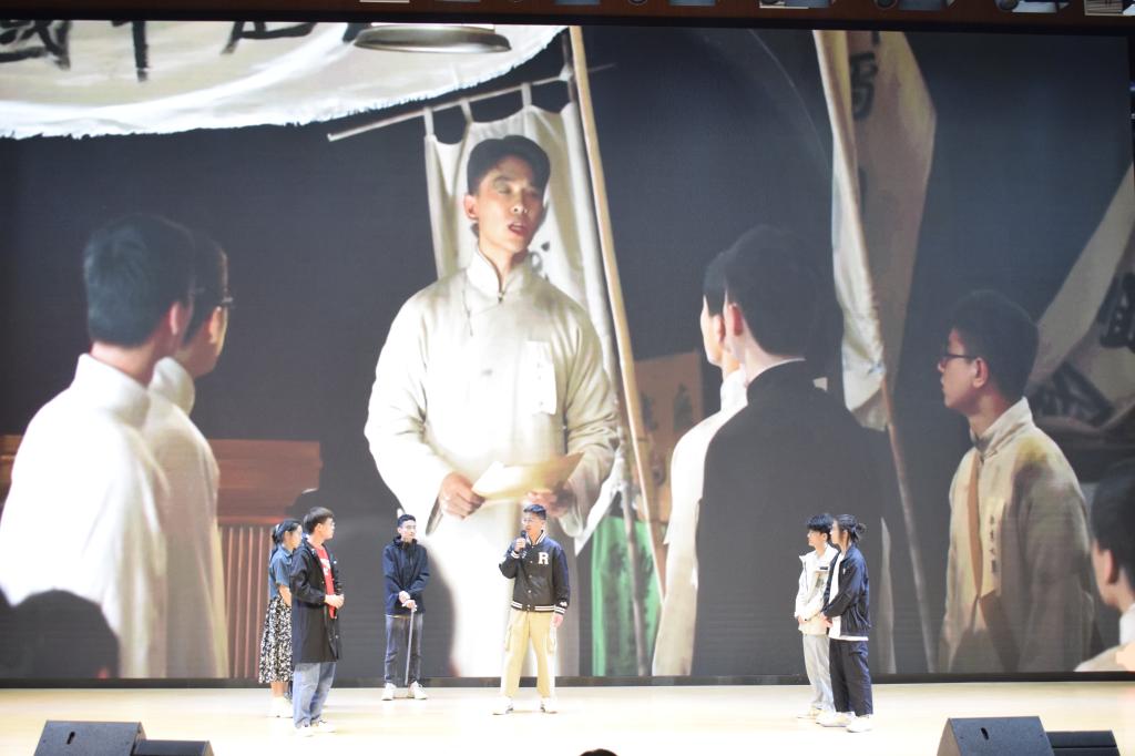 随后,班级风采大赛开始。经过初赛、复赛,共有8个班级进入决赛。决赛由班级视频展示和节目汇演两部分,形式有朗诵、相声、舞台情景剧等。其中土木工程212班的诗朗诵《请党放心 强国有我》引人入胜,充分体现了当代青年昂扬的斗志和青春风貌;城乡规划211班带来的相声《听我韶韶》别具一格,诙谐幽默,赢得了在场观众的阵阵掌声;建筑学213班带来的话剧《觉醒》带我们重温了那段久久无法抹去的历史记忆... ...经评委评分和评议,城乡规划212荣获表演一等奖,建筑学211和建筑学213荣获最佳主题奖。