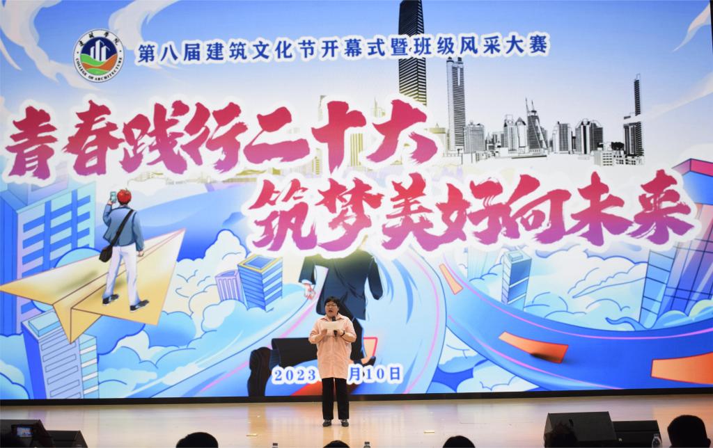 为进一步激发学生专业学习兴趣,提高学生艺术鉴赏能力和专业素养,增加建筑类人才培养与社会发展的契合度,扎实推进学风建设。建筑学院于5月10日晚在龙湖校区东辅楼报告厅成功举办“青春践行二十大 筑梦美好向未来”第八届建筑文化节开幕式暨班级风采大赛。学院党委书记傅友福、院长张远兵,全体辅导员及部分教师代表参加开幕式,学院21级、22级学生到场观看。