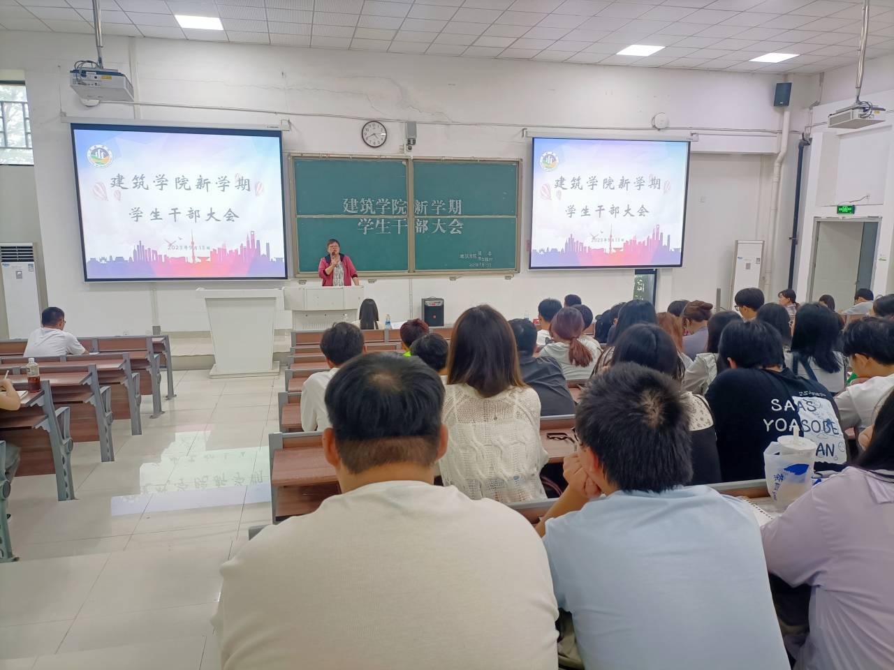 为进一步提高学生干部工作主动性,加强管理与服务水平。9月13日下午,建筑学院在致知楼C111教室召开新学期学生干部大会。学院党委副书记谢宜勤,全体辅导员,各学生团体组织成员及各班级主要学生干部参加会议。会议由专职辅导员武辉主持。