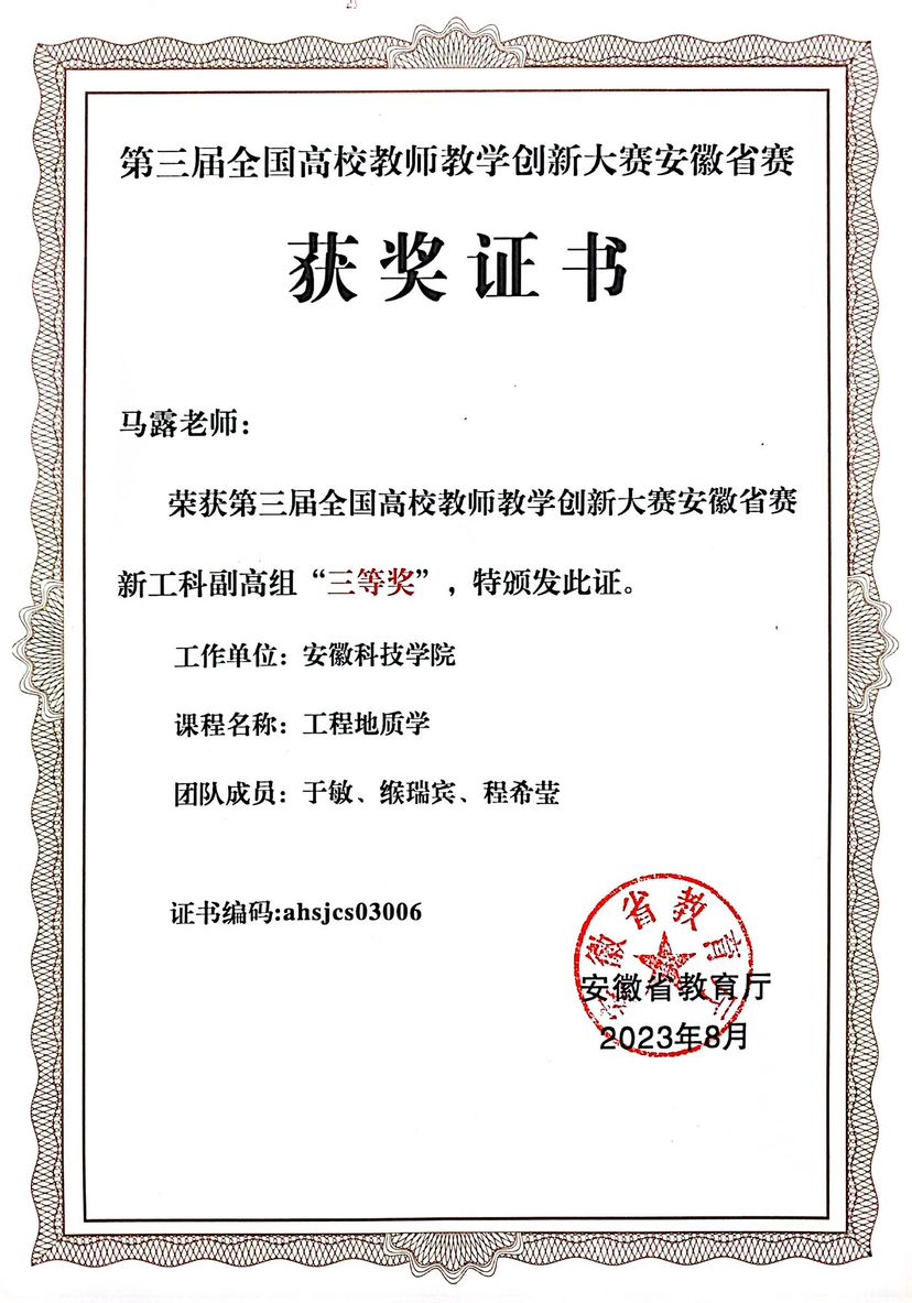 建筑学院马露老师荣获安徽省高校教师教学创新大赛三等奖