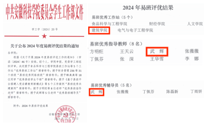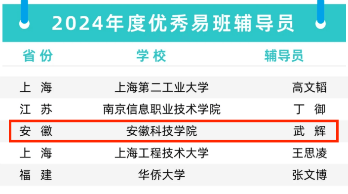 近日,教育部易班发展中心公布了2024年度全国易班共建优秀名单,建筑学院专职辅导员武辉获评2024年度全国“优秀易班辅导员”,安徽省仅1位辅导员获得此荣誉。