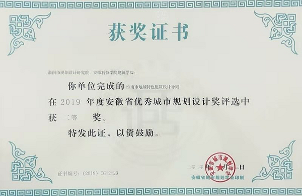 2.建筑学院张远兵、吴伟东、周玉佳老师参加完成的《淮南市地域特色建筑设计导则》荣获中国足彩网:度安徽省优秀城市规划设计二等奖