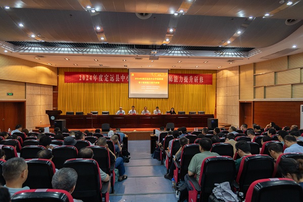 为进一步深入学习贯彻习近平总书记对学校思政课建设作出的重要指示批示精神,提升定远县中小学思政课教师队伍的综合素质和教学能力,7月14日至18日,由安徽科技学院、定远县教育体育局联合主办,马克思主义学院承办的2024年度定远县中小学思政课骨干教师能力提升研修活动在我校顺利举办。182人参加本次研修。定远县教育体育局工委副书记黄如勇、师训中心主任武红、定远县政府教育督导室副主任陈灯荣,马克思主义学院党总支副书记、院长张德化等出席开班式,学院党总支书记杨仕勇主持。