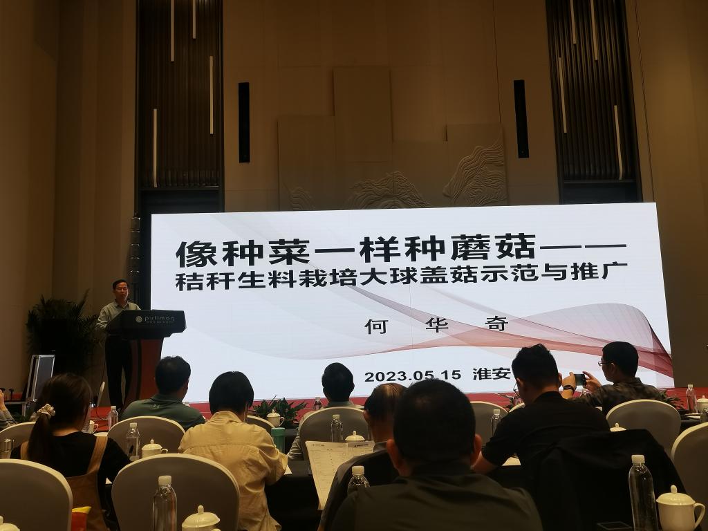 长三角食药用菌产业创新联盟理事何华奇在会上作了《像种菜一样种蘑菇——秸秆生料栽培大球盖菇示范与推广》的学术报告。报告以我校食用菌科技特派团的服务实践为例,把论文写在大地上,充分发挥科技特派员的作用,为乡村振兴做贡献。