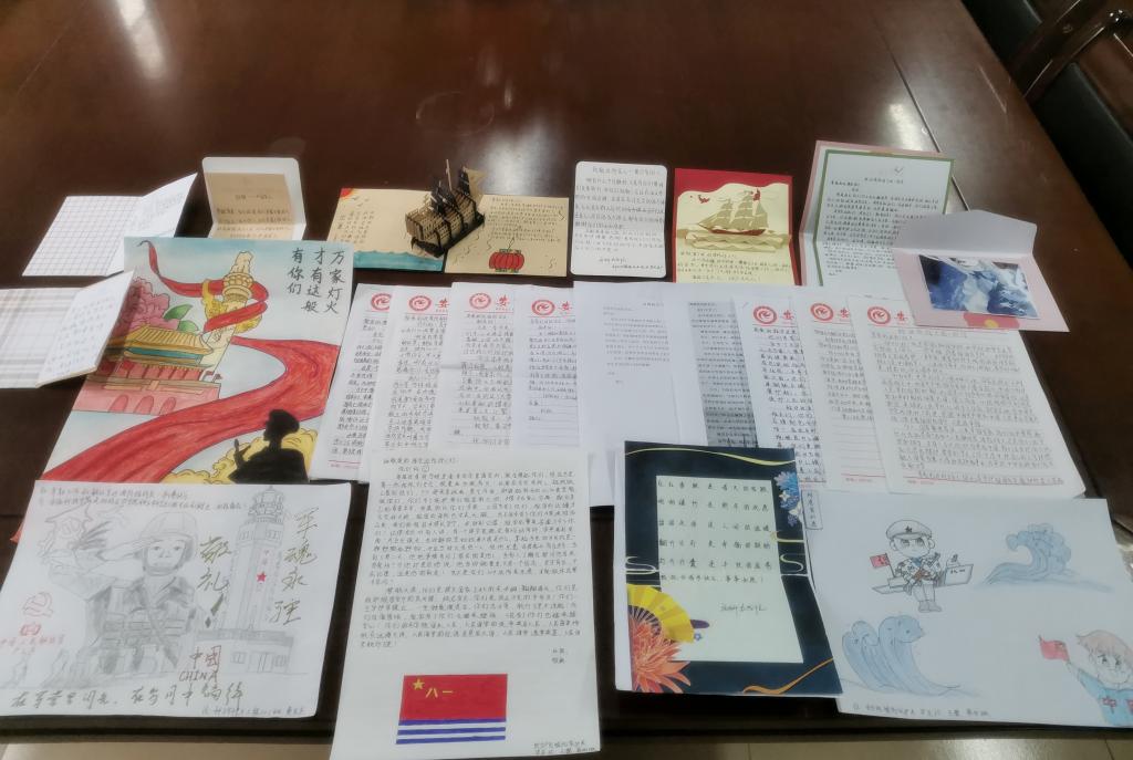 此次活动一共向边海防官兵送去23件慰问信及精美贺卡作品,每一封信件和贺卡都饱含师生们对边海防官兵的真情关切和真挚祝福。“哪有什么岁月静好,不过是有人替我们负重前行”、“我们生在春风里,长在红旗下”、“人民有信仰 ,国家有力量”、“目光所至皆为华夏,五星闪耀皆为信仰!”这些真情流露的话语被一字一句认真的写在纸上,都是师生们发自内心对戍边官兵最崇高的敬意,表达了师生对“最可爱的人”最美好的祝愿,充分展现了军民团结的鱼水情谊。(特约通讯员:汪道兵 摄影:汪道兵 审核:张轶辉)