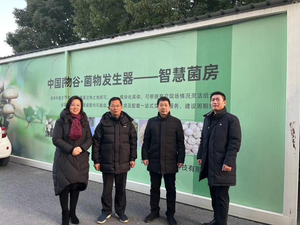 1月16日,农学院何华奇教授与生命与健康科学学院孙玉军教授、安徽科技学院创业大学生——安徽来一克实验科技有限公司总经理郭凯等到长丰县中国菌物谷考察食用菌智慧方舱项目。安徽省食用菌行业协会会长、玉隆农业高科技股份有限公司总经理常莹等陪同参观。