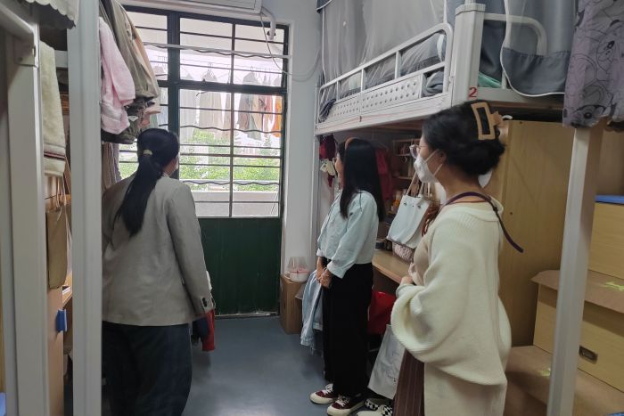 为了进一步了解同学们的日常学习生活状态,排查宿舍安全隐患,5月24日,农学院党委副书记、纪委书记张轶辉带领全体辅导员走进学生宿舍开展安全隐患检查。