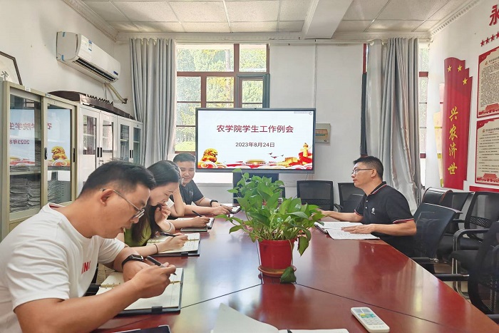8月24日,农学院在学院党员活动室召开学生工作例会,农学院党委副书记张轶辉、各专职辅导员参加会议。会议由张轶辉主持。
