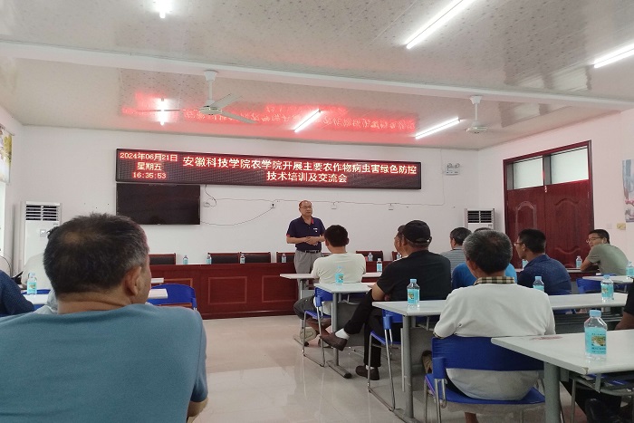 在党建共建、校地合作交流会上,板桥镇党委书记毛存昭对农学院师生的到来表示热烈欢迎,并详细介绍了板桥镇行政区划、农业农村发展情况和主要产业,总结了板桥镇的党建经验和所取得的成绩。农学院党委书记何世潮简要介绍了农学院党纪学习教育开展情况和此行的主要目的,希望通过这次交流,农学院能够充分发挥自己的智力优势和科研力量,为板桥镇的经济发展、社会治理等方面提供一些智力支持和创新动力;同时也希望板桥镇能够为农学院的人才培养、实践教学和科研成果转化提供广阔的舞台和丰富的素材,实现校地双方的共同发展。农学院副院长舒英杰简要介绍了安徽科技学院和农学院基本情况,农学院副院长李文阳就科研合作、校地共赢发展提出思路和建议。