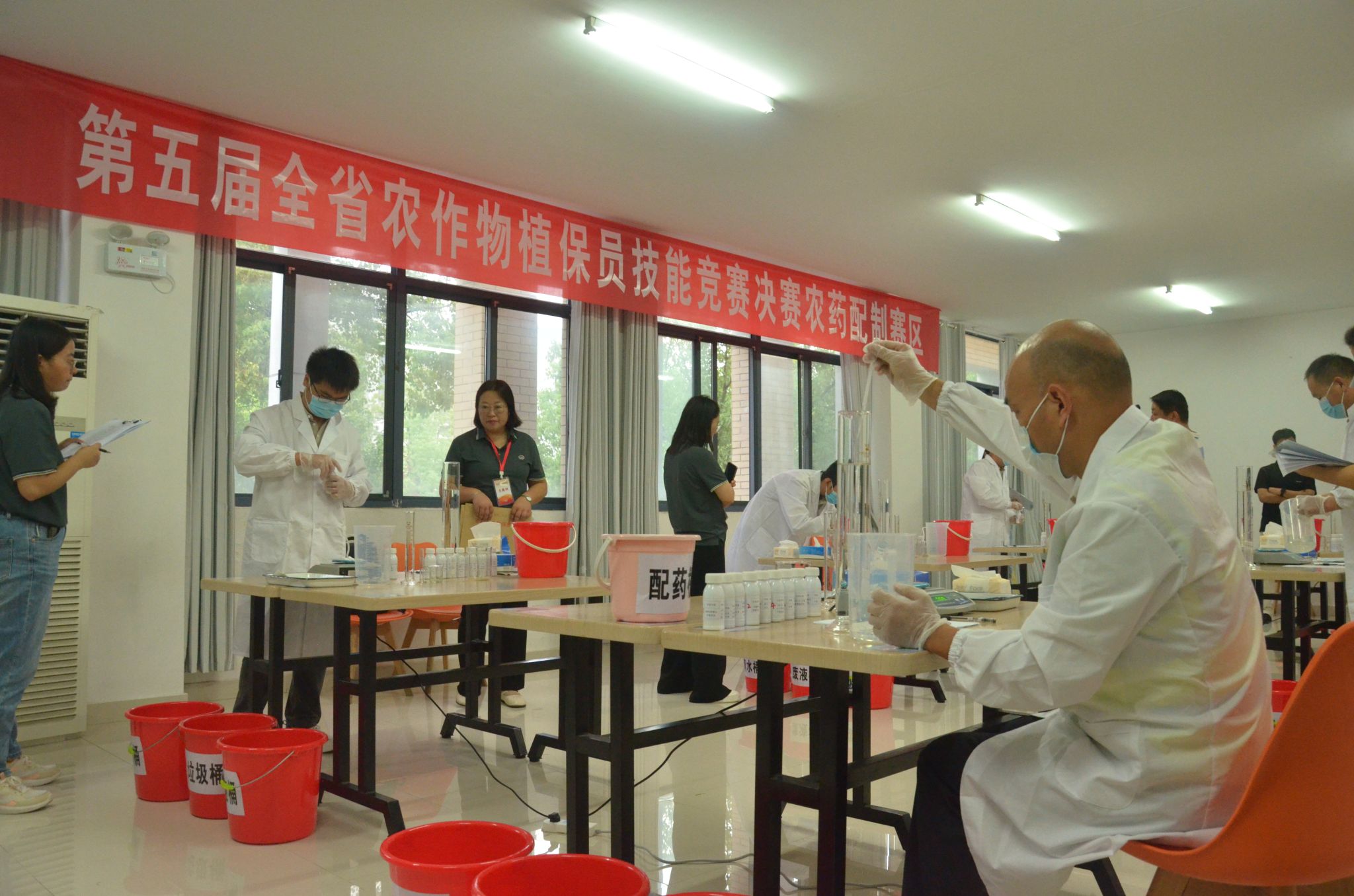 大赛分理论知识考试、农作物病虫害识别、农药配制和植保飞防四场比赛。经过初赛,全省16个市从事农作物植保的农业农村技能人才和农业企事业单位一线职工48名选手参加本次决赛。裁判委员会由来自安徽农业大学、安徽省农业科学院和我校共5位专家担任主监考官、裁判长和主裁判。