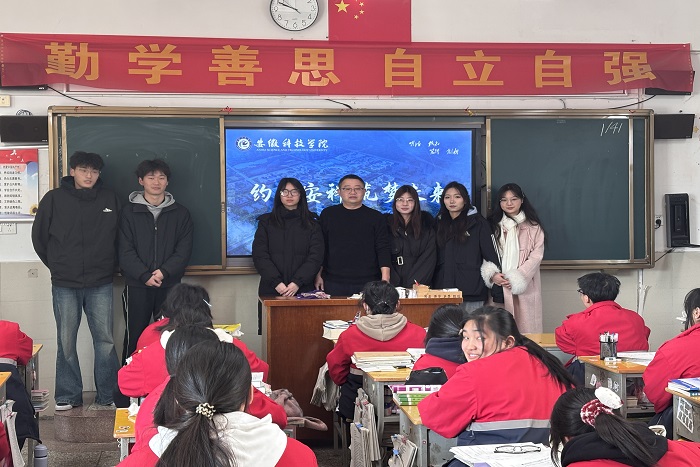 到母校后,团队成员首先拜访了高中班主任并进行了交流,向老师分享了自己在安科的收获与成长。在老师的带领下,团队成员来到高三部分班级开展宣讲活动。结合ppt向学习学妹们概述了安科的历史底蕴、发展前景、学科专业和校园生活等方面的基本情况,让学弟学妹们对安科有了基本的认识。班主任补充阐述了凤阳的历史并介绍了凤阳的花鼓戏,激发了学弟学妹们的兴趣。在提问环节,团队成员积极解答学弟学妹们的问题和困惑,与他们进行交流互动,深化他们对安科的了解,增强他们对安科的向往之情。团队成员还分别分享了自己在高中的学习经验和大学校园生活,并鼓励母校的学弟学妹们勇敢追求自己的梦想,树立清晰的目标,并为之努力学习。