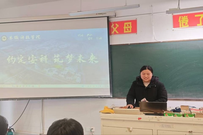 活动当天,实践团队受到了师生们的热烈欢迎。回到母校后,团队优先拜访了高中的班主任及任课老师,向他们分享了在安科的学习生活情况。在班主任的带领下,团队对高中的学弟学妹们进行了宣讲。在宣讲环节,队长饶静雨向学弟学妹们讲解了安徽科技学院的校园风貌、专业设置、学术资源及丰富多彩的校园文化生活,并结合实际案例生动形象地介绍了各个专业的特色课程培养方向和就业前景,让同学们对大学专业有了更为直观和深入的认识。细致解读了招生政策后,对于有意报考安徽科技学院的学弟学妹们也热情地提供了相关信息。最后团队耐心解答了学弟学妹们的各个疑问并分享了高中的学习经验,鼓励他们好好学习。