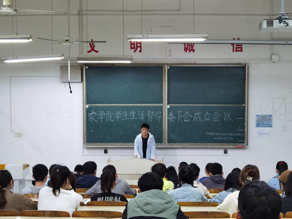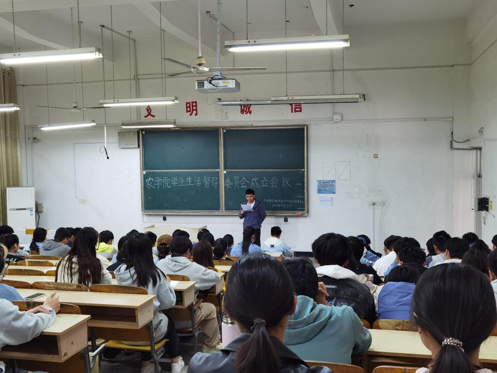 为引导和督促广大同学自觉遵守学校学生管理相关规定,树立大学生文明形象,推进校园文明建设,4月17日,农学院召开学生生活督导委员会成立会。会议由学生生活督导委员会全体成员及各班级生活委员参加。