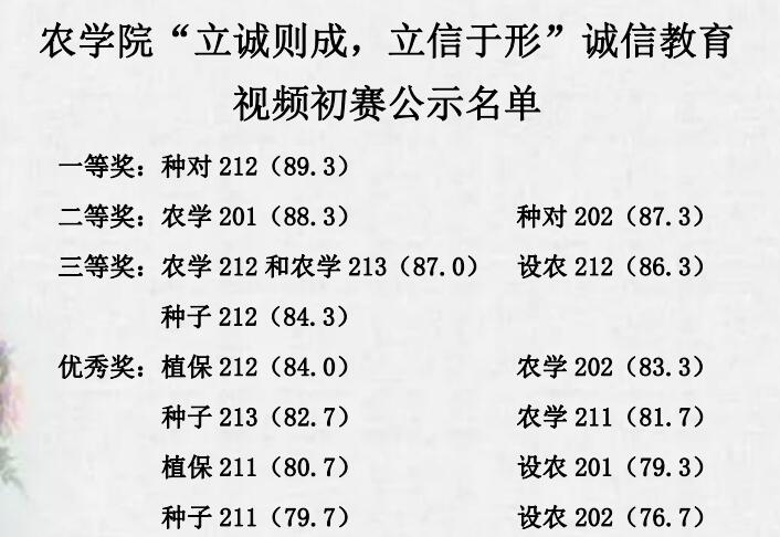 农学院举办“至诚则成,立信于行”微视频大赛初赛