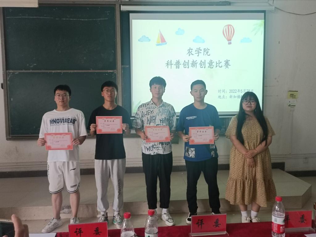 为充分锻炼学生的科研创新能力,普及科学知识、弘扬科学精神,5月28日下午,农学院于新知楼A110举办金禾工程系列活动之科普创新创意大赛。农学院李瑞宁博士、艾昊博士和李敏老师应邀担任评委,学院20余支代表队参赛。