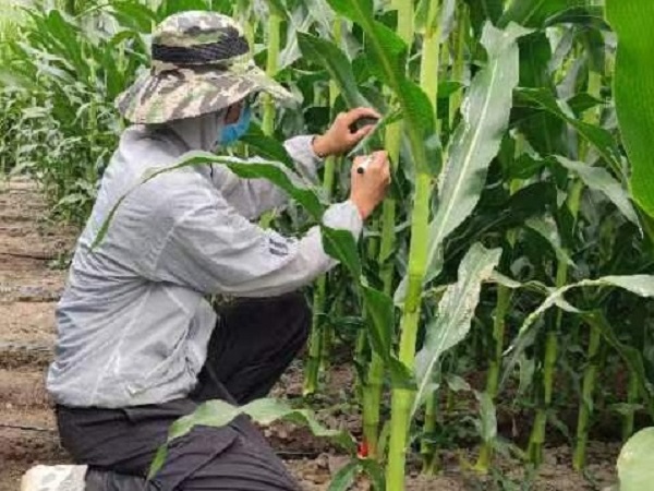 在师兄师姐的指导和帮助下,实践团迅速投入到玉米科研实践中去, 白天对玉米叶片进行标记,观察记录羽毛吐丝、抽雄情况 ,对玉米地进行滴灌冲肥。晚上学习文献资料,与师兄师姐讨论交流实践心得,每天的实践活动都非常充实。