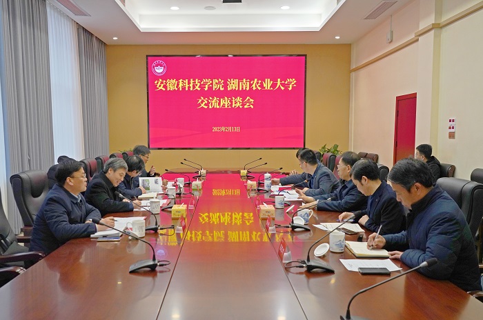 蒋德勤向湖南农业大学介绍了安徽科技学院的办学历史、基本校情及近年来改革、建设与发展情况,详细听取了湖南农业大学近年来改革、建设与发展情况的介绍,特别是在学科建设、人才队伍建设、人事管理及产学研合作等方面取得的显著成效、积累的成功经验。