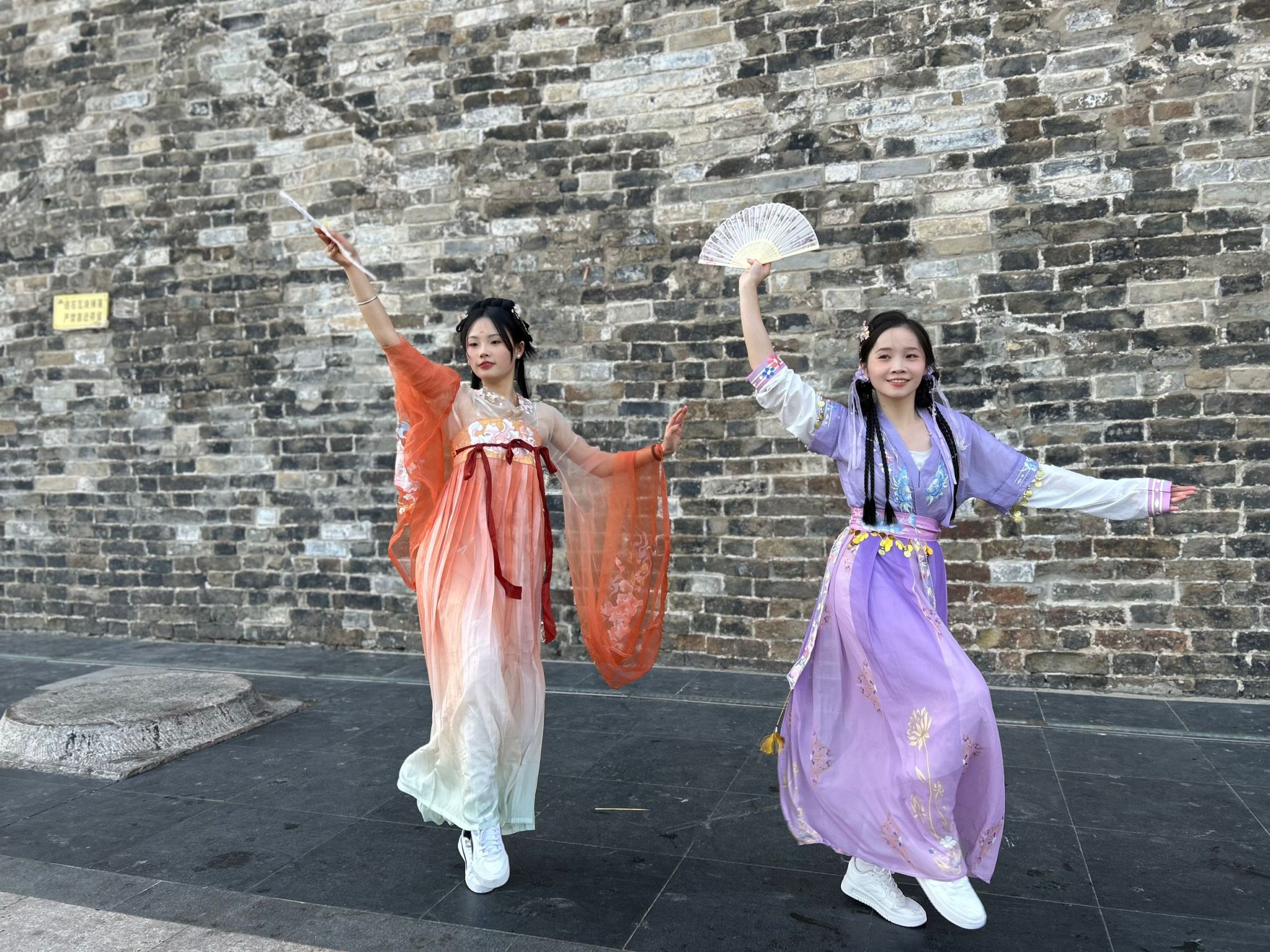 碧空如洗,惠风和畅。安科学子身着汉服,步行至鼓楼城墙下。女式服饰齐胸襦裙如彩云追月,轻盈灵动;曲裾深衣则端庄典雅,尽显闺秀风范;男式服饰直裰潇洒飘逸,颇有魏晋风骨。在展示汉服风采的基础上,同学们还向现场观众介绍了所穿服饰的文化内涵与所属朝代的礼仪,让那些沉睡在历史长河中的中华礼仪重焕生机,让中国传统服饰文化的优秀因子鲜活起来。