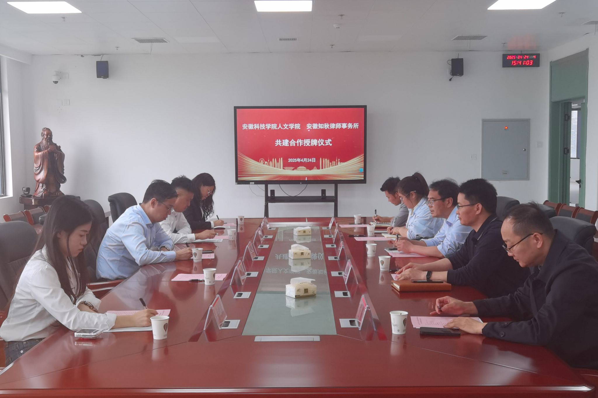 4月24日下午,人文学院与安徽知秋律师事务所在学院313会议室举行共建合作授牌仪式。安徽知秋律师事务所主任、首席合伙人宫鉴一行4人,人文学院党政领导班子成员和教师代表出席。仪式由人文学院副院长牛永辉主持。