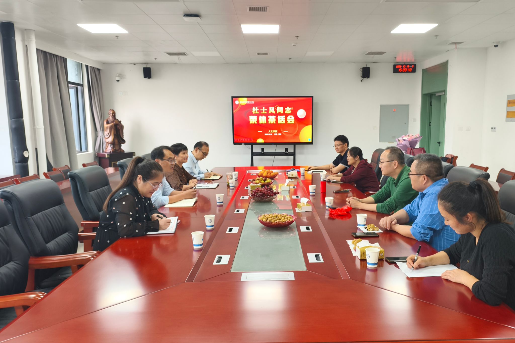10月15日下午,人文学院在学院会议室为刚刚退休的原人文学院党委书记杜士凤举办了一场荣休茶话会。学院党政领导、教师代表等参加茶话会。会议由人文学院党委书记、院长李晓东主持。