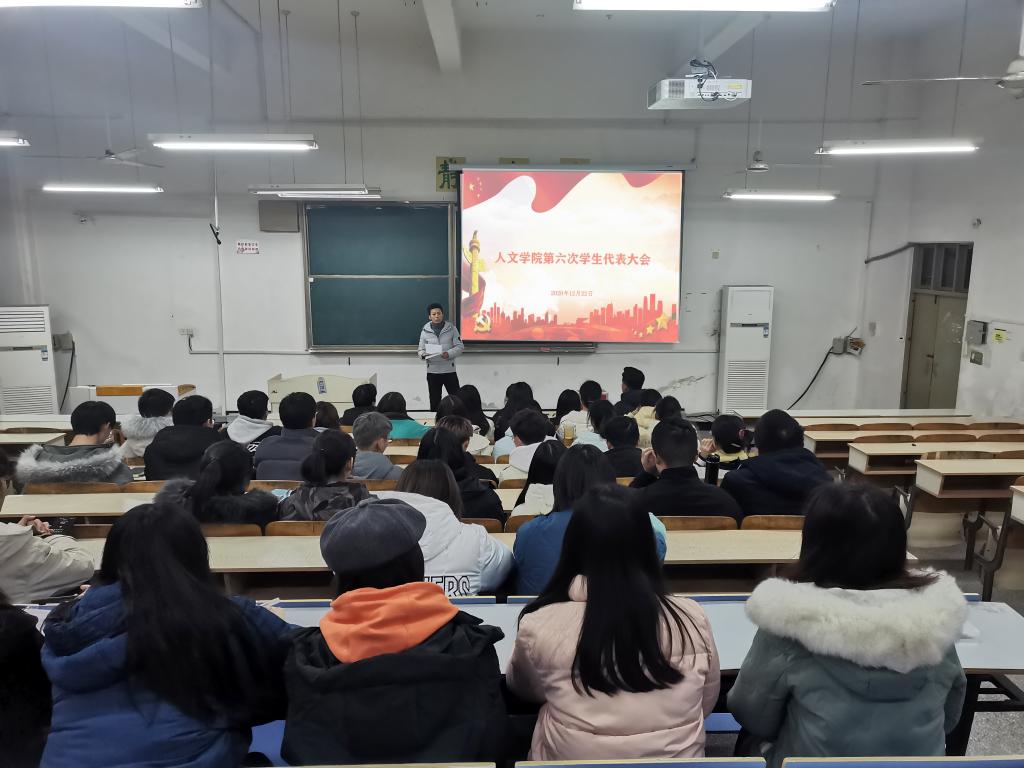 12月22日,人文学院于求知楼A104教室举行第六次学生代表大会,辅导员焦雪松及各班级学生代表出席,会议由焦雪松主持。
