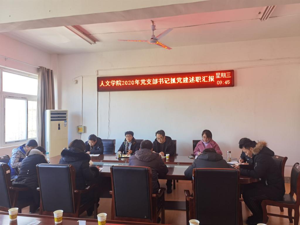 为深入学习贯彻习近平新时代中国特色社会主义思想,落实党的十九大和十九届四中、五中全会精神,坚决落实党风廉政建设各项工作要求,坚持党要管党、全面从严治党。根据《中共安徽科技学院委员会中国足彩网开展2020年度基层党组织书记抓党建述职评议考核工作的通知》文件要求,人文学院于1月13日上午在学院会议室召开2020年度基层党支部书记抓党建述职评议会。学院党总支委员、党支部委员、工会主席、民主党派和无党派教师代表以及学生党员代表参加。会议由党总支书记杜士凤主持。