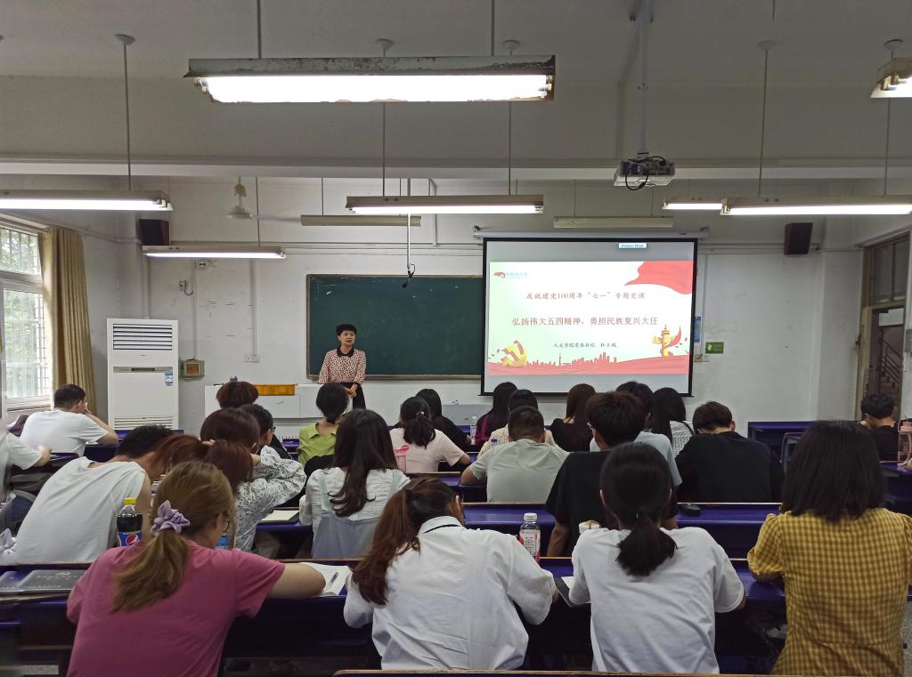 6月21日下午,人文学院在学知楼B206教室举办庆祝建党100周年“七一”专题党课。专题党课由学院党委书记杜士凤主讲,人文学院全体学生党员参加。