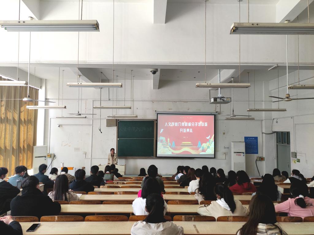 4月2日下午,人文学院第56期入党积极分子培训班开班典礼在求知楼A102举行。学院党委书记杜士凤、党委副书记李沙娜,专职辅导员焦雪松、鲁冰冰、方明旺出席开班典礼。