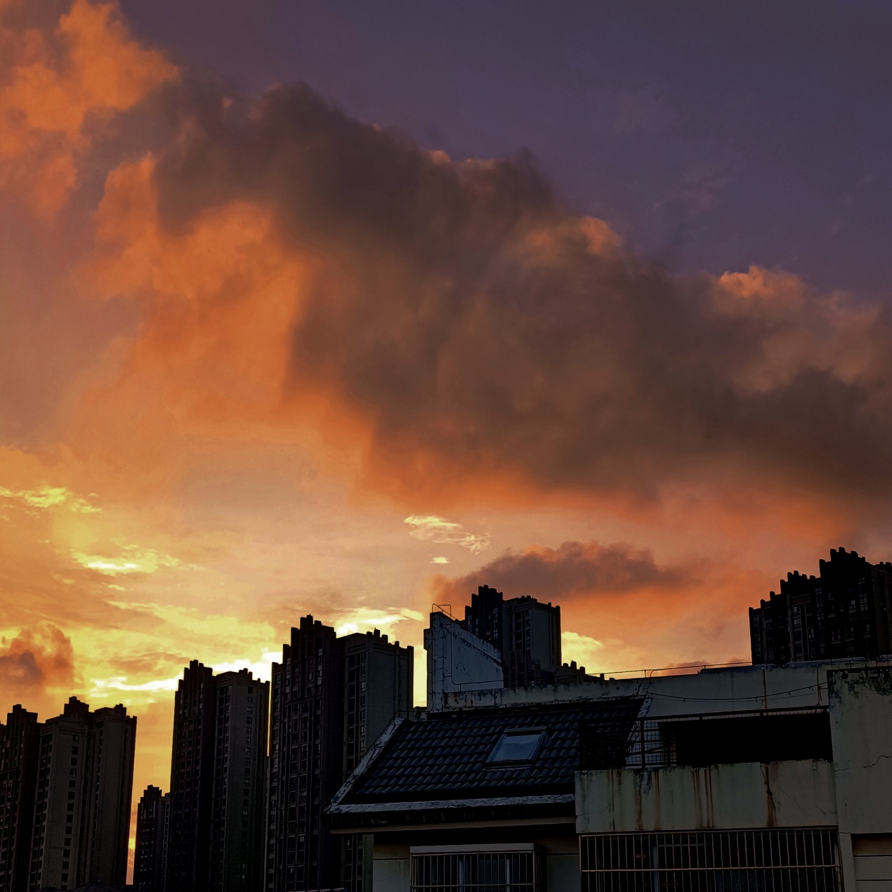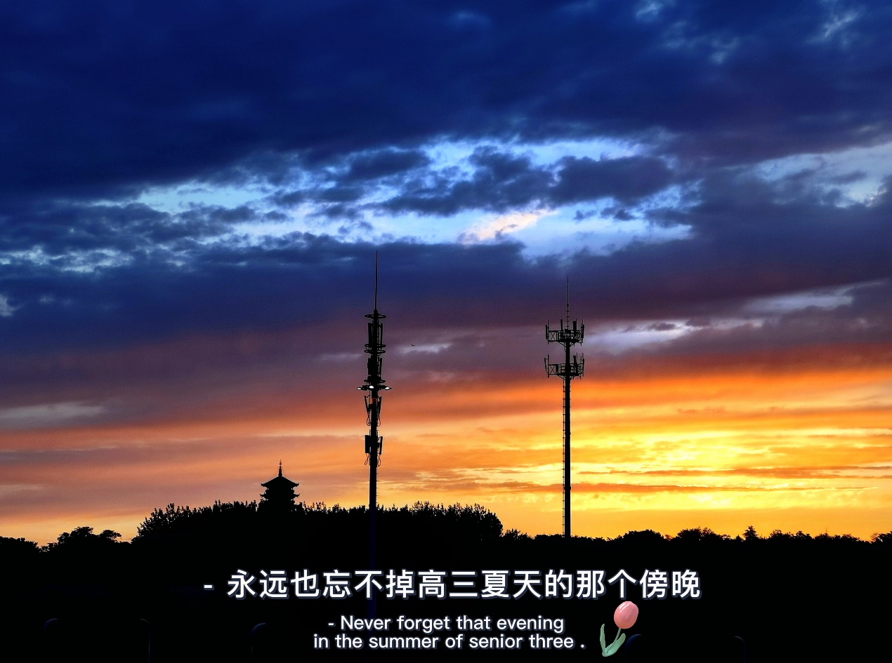 作品介绍:以日落晚霞和现实居民楼相互映照,突出烟火人间和芸芸众生的氛围感。十八线小县城的车水马龙和居民楼群,是柴米油盐酱醋茶,是嬉笑怒骂烟火气。金灿灿的天空画布歌颂着琐碎生活中的点点欢喜。