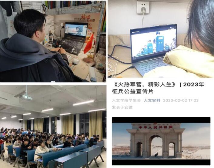为扎实做好2023年大学生征兵宣传工作,扩大征兵宣传的影响力和辐射面,激发我院学生参军报国的热情。人文学院于3月1日-5日有序组织全体学生835人收看征兵公益宣传片《火热军营,精彩人生》。